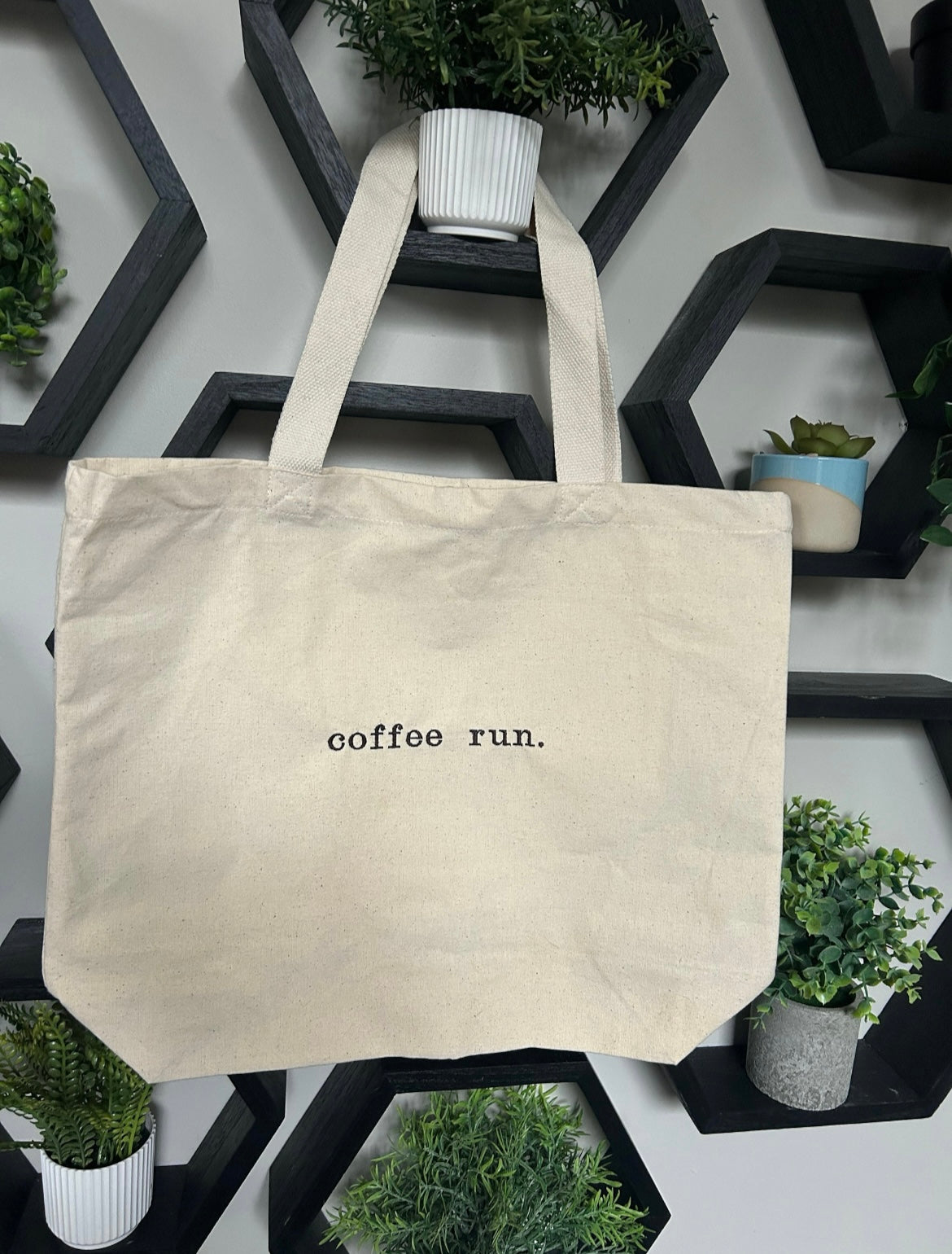 Made from durable, high-quality canvas, this tote is built to last, with ample room for your coffee, snacks, essentials, or shopping haul. The premium embroidery ensures that the "Coffee Run" design stands out with vibrant, lasting detail, adding a touch of personality to your everyday routine.