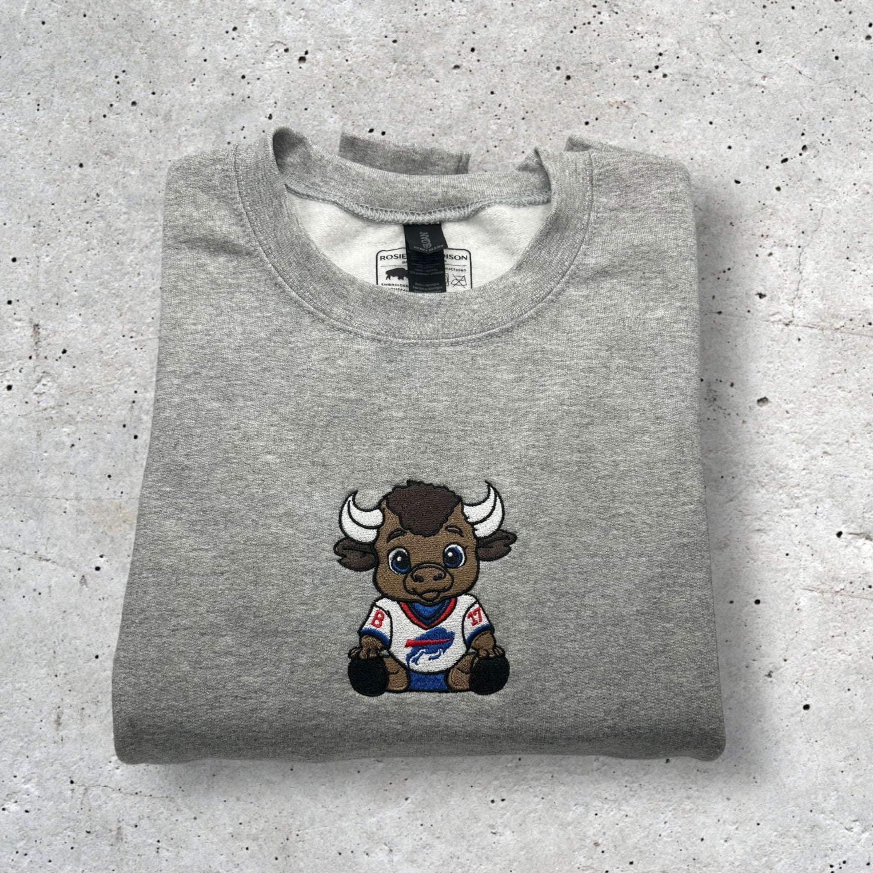 Get ready to add a touch of playful charm to your wardrobe with the Gildan Embroidered Baby Billy Sweatshirt. Featuring an adorable, detailed "Baby Billy" embroidered graphic, this sweatshirt is the perfect blend of comfort and fun. Whether you're tailgating, going to a Bills game. or out with friends, this sweatshirt is sure to turn heads and bring a smile to anyone who sees it.