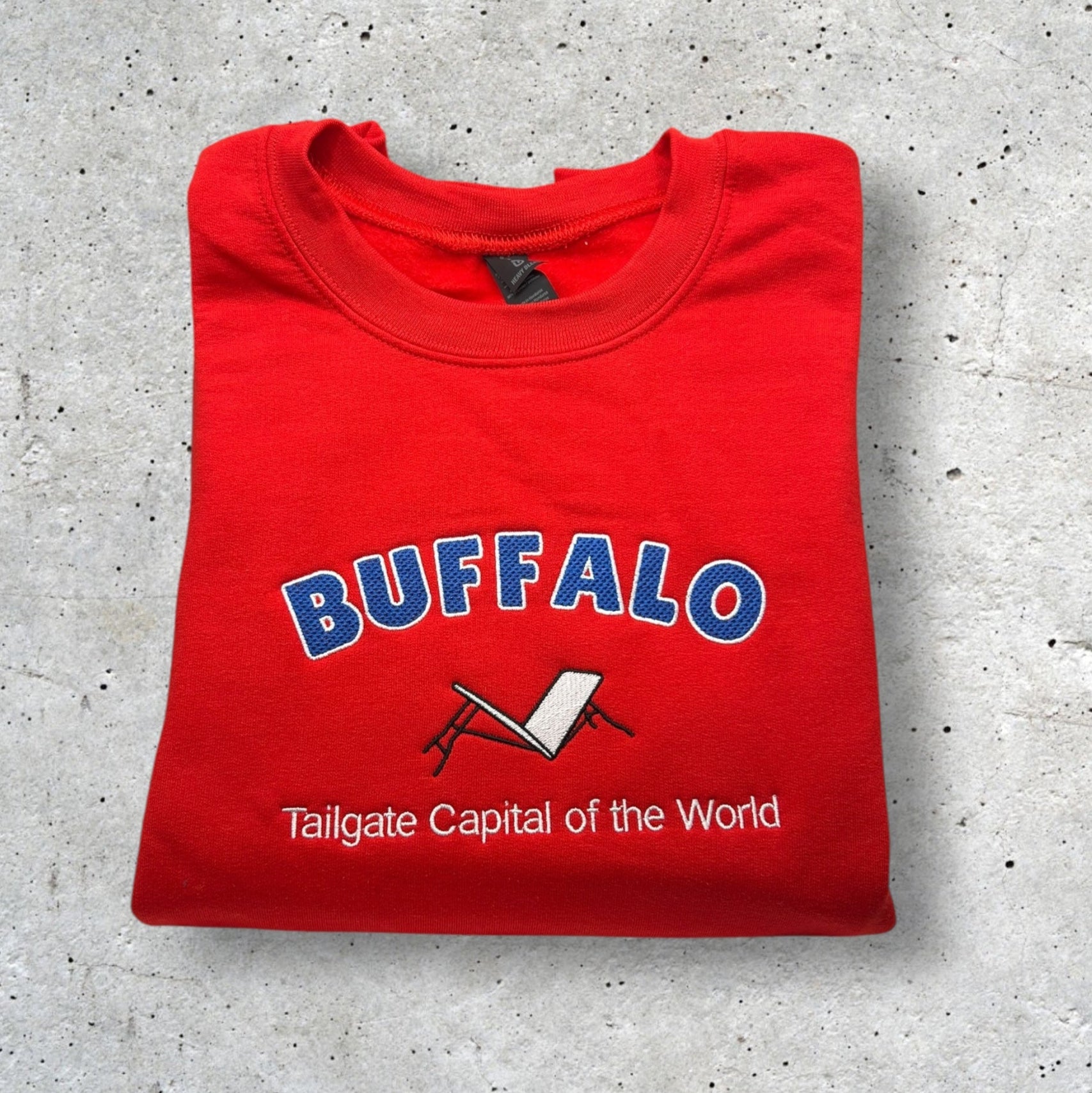 Get ready for the ultimate game day experience with the Gildan Embroidered Buffalo Tailgate Capital Sweatshirt! Perfect for Buffalo fans who know that tailgating is as much a part of the game as the action on the field, this sweatshirt celebrates the city’s love for sports, food, and fun. The bold "Tailgate Capital" embroidered graphic lets everyone know that Buffalo is the true heart of tailgate culture, while adding a dash of team spirit to your wardrobe.