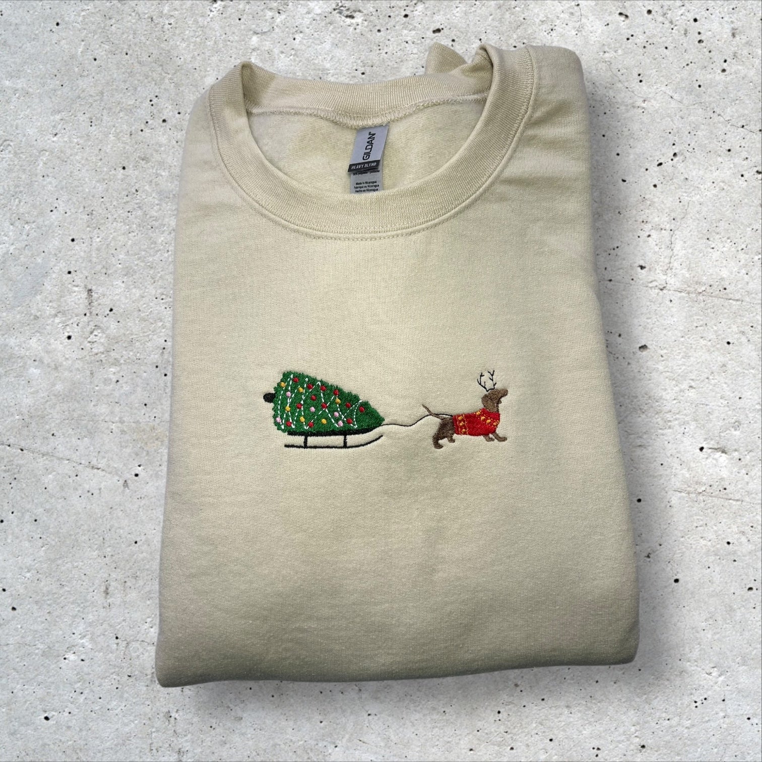 Get into the holiday spirit with the Gildan Embroidered Christmas Pup Sweatshirt! Featuring an adorable, embroidered festive pup wearing a cozy sweater and pulling a Christmas tree, this sweatshirt is the perfect way to spread cheer and showcase your love for the holidays and furry friends. The playful, high-quality embroidery captures the essence of Christmas in a fun and heartwarming way, making it a must-have for the season.