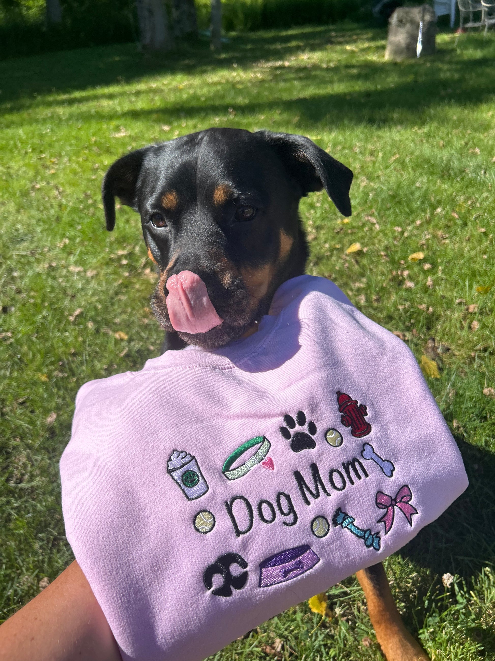 Celebrate your pup-loving lifestyle in cozy style with our Embroidered Dog Mom Sweatshirt! Made on a soft and durable Gildan Heavy Blend Crewneck, this sweatshirt is perfect for walks at the park, pup cup runs, or just snuggling on the couch with your four-legged best friend.