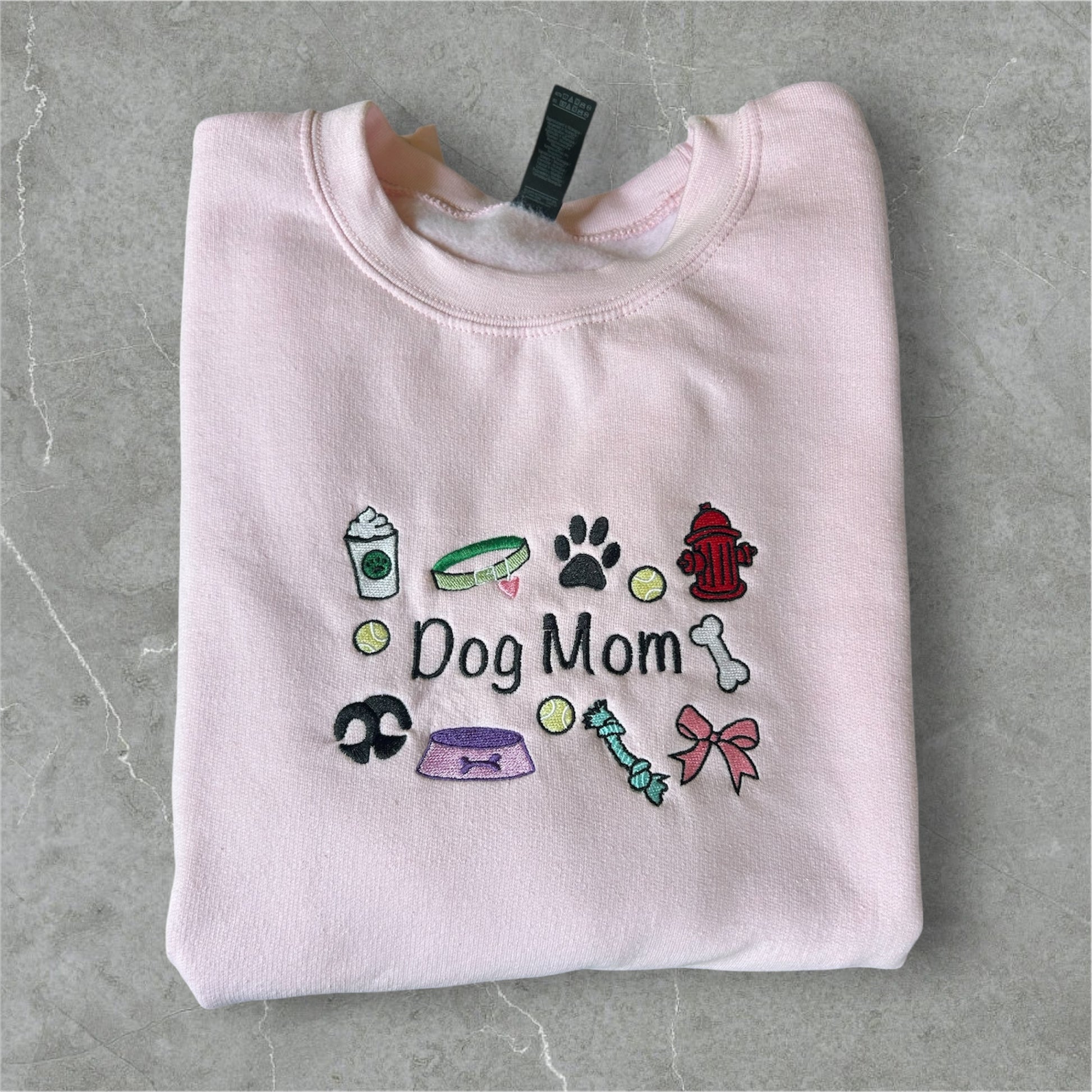 The front features detailed embroidery that highlights every dog mom essential — a dog bone, treats, a pup cup, and of course, tennis balls (because one is never enough). Whether you’re fetching compliments or actual toys, this sweatshirt lets everyone know your heart belongs to your pup.