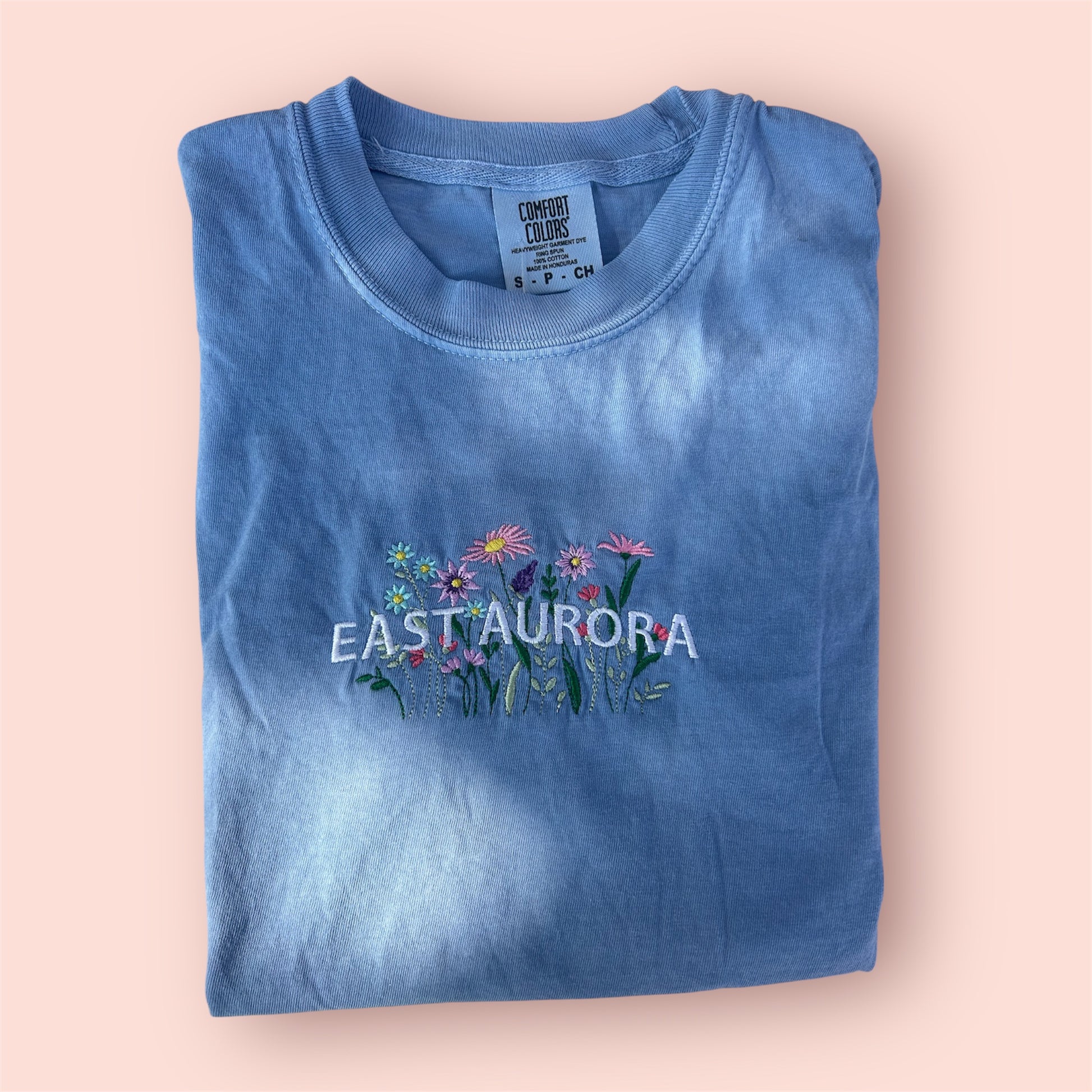 Rep your East Aurora pride with this floral tee. Embroidered on Comfort Colors Full length tee.