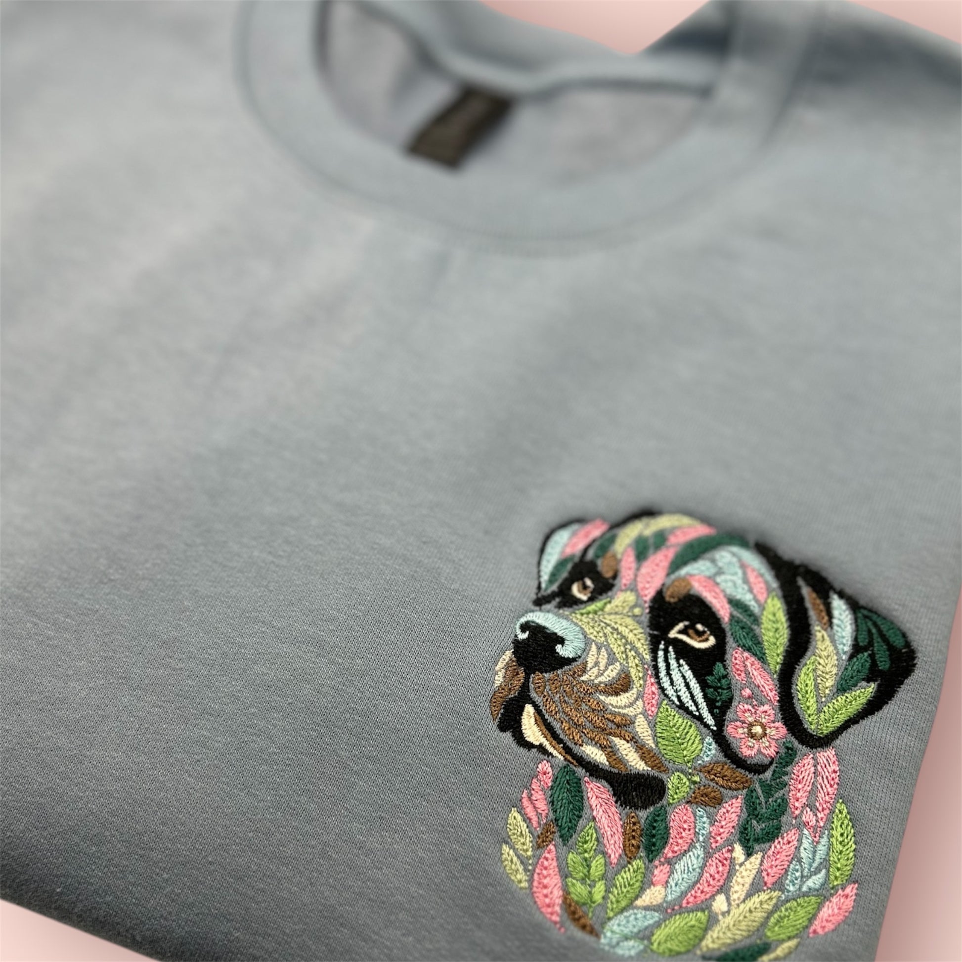 Embroidered Floral Rottweiler Crewneck – Gildan Midweight Softstyle