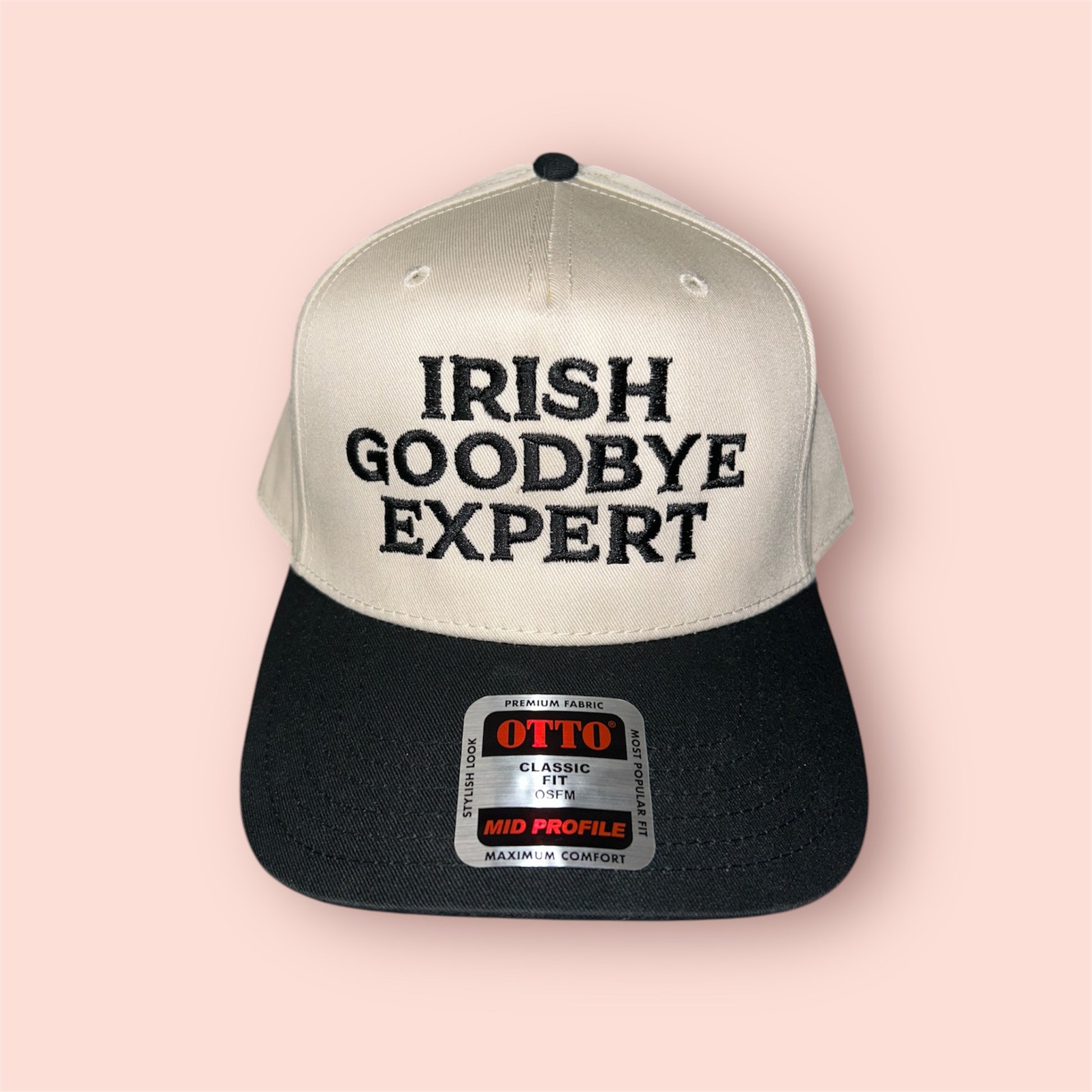 Say goodbye in style with the Embroidered Irish Goodbye Expert Trucker Hat! Perfect for those who know how to exit a party without making a scene, this hat showcases a cheeky nod to the art of the "Irish Goodbye."