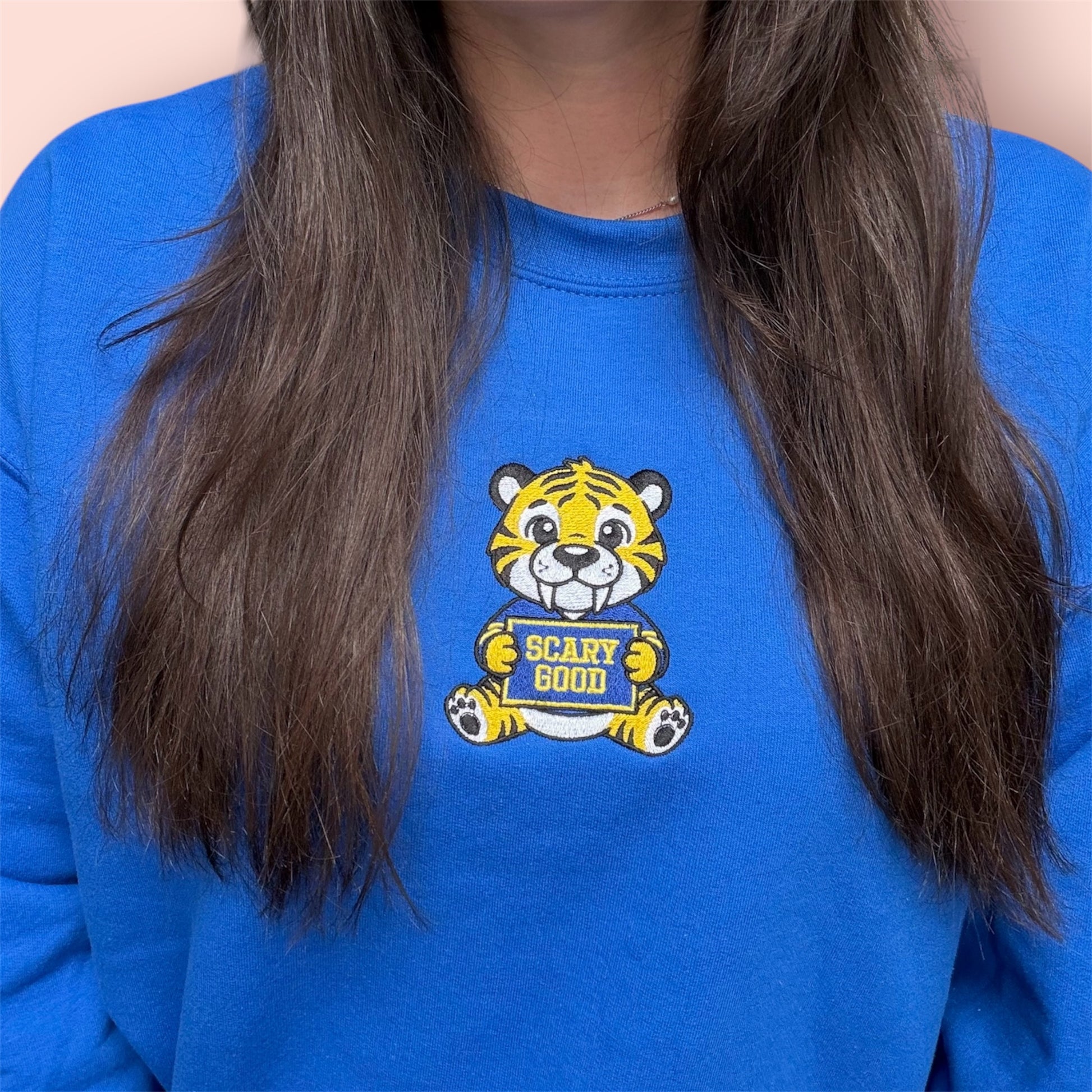 Cozy up in Buffalo Hockey spirit with this playful embroidered sweatshirt featuring the iconic "Lil Tooth" cheering on our Scary Good team! Perfect for fans who want to rep their team with personality and charm. Soft, comfortable, and ready to become your go-to layer for game days or casual wear.