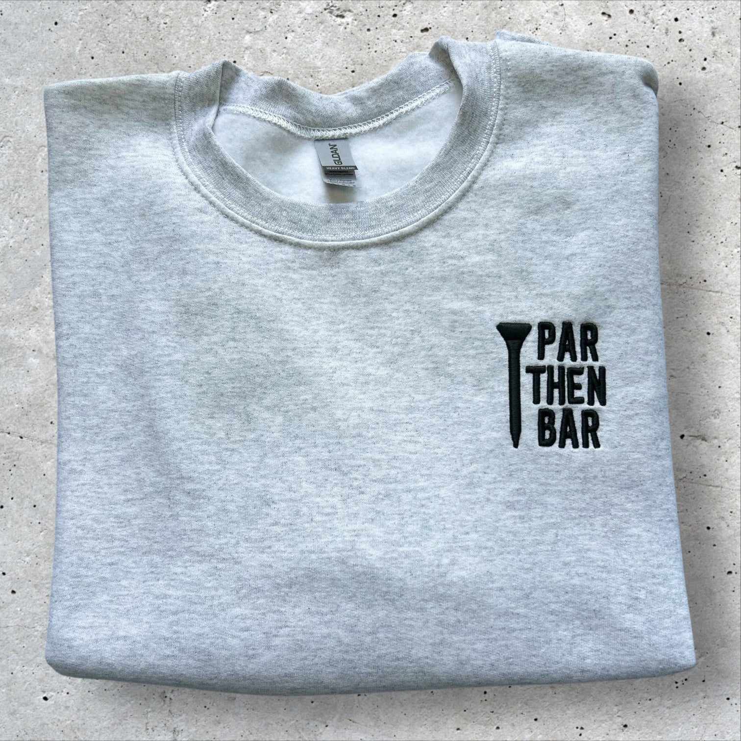 Crafted from Gildan’s ultra-soft cotton blend, this crewneck offers a comfortable fit that’s perfect for casual wear, a round of golf, or hanging out at the clubhouse. The unique 3D embroidery adds texture and depth to the design, giving the "Par Then Bar" graphic a modern, standout look that’s sure to get noticed.