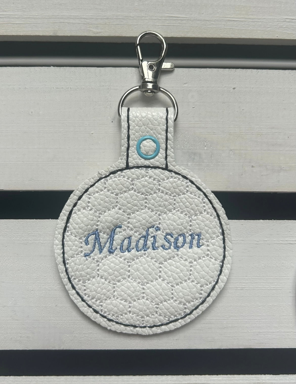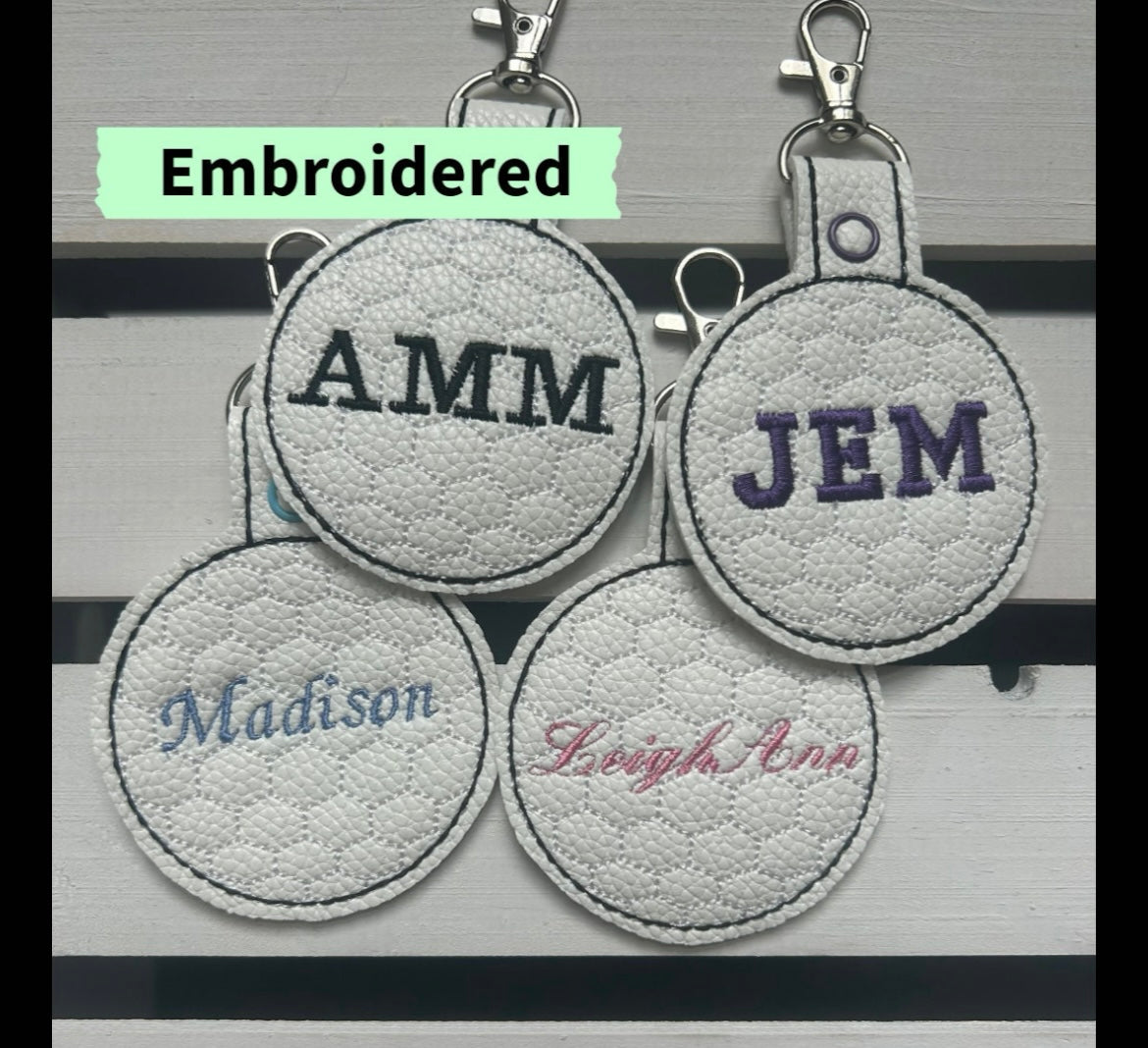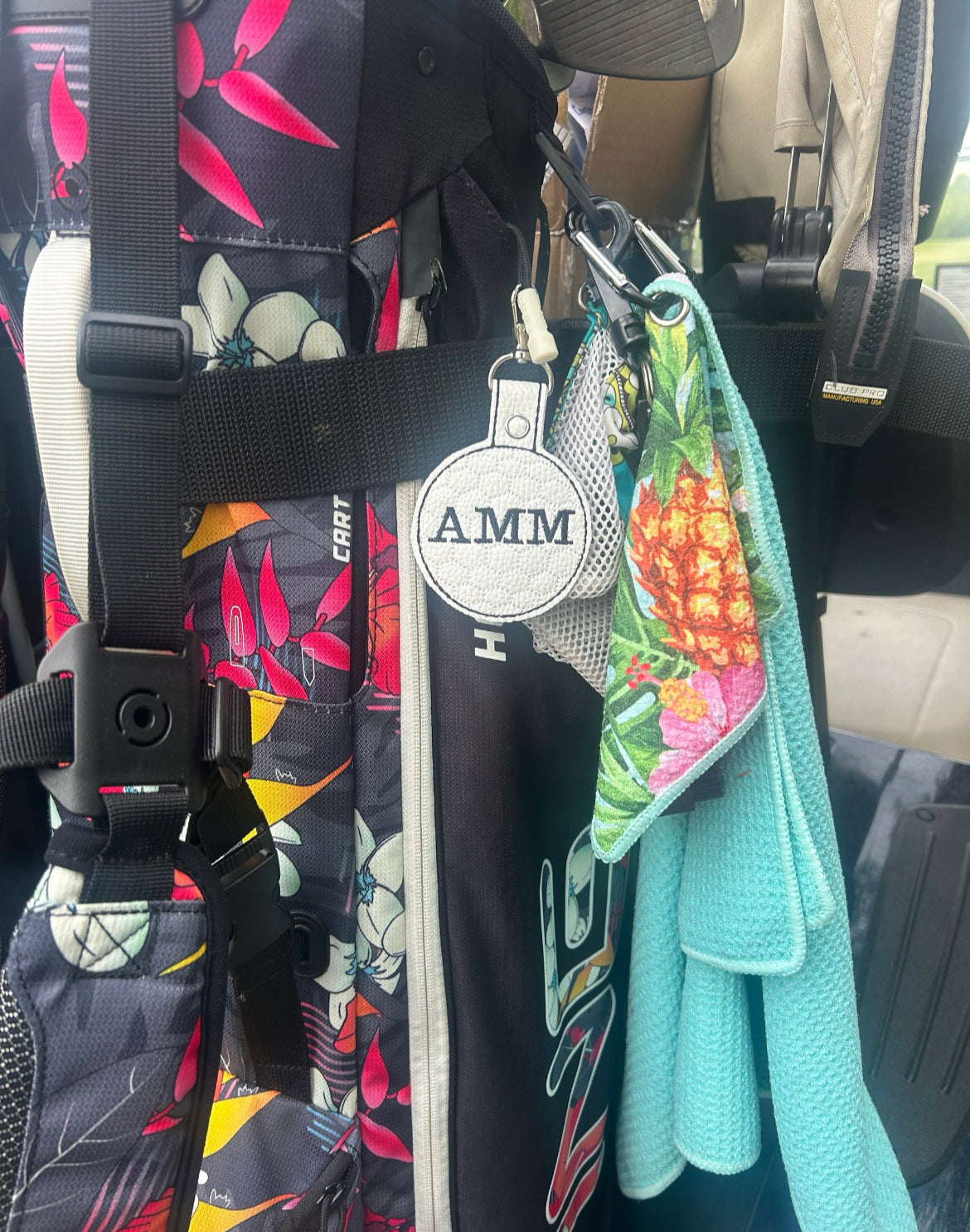 Customize this golf bag tag with your name or initials in the thread color of your choice! Embroidered on waterproof marine vinyl, this tag is durable and will last for many seasons to come. All tags are secured with snaps and a metal clasp for a quick addition to your bag.