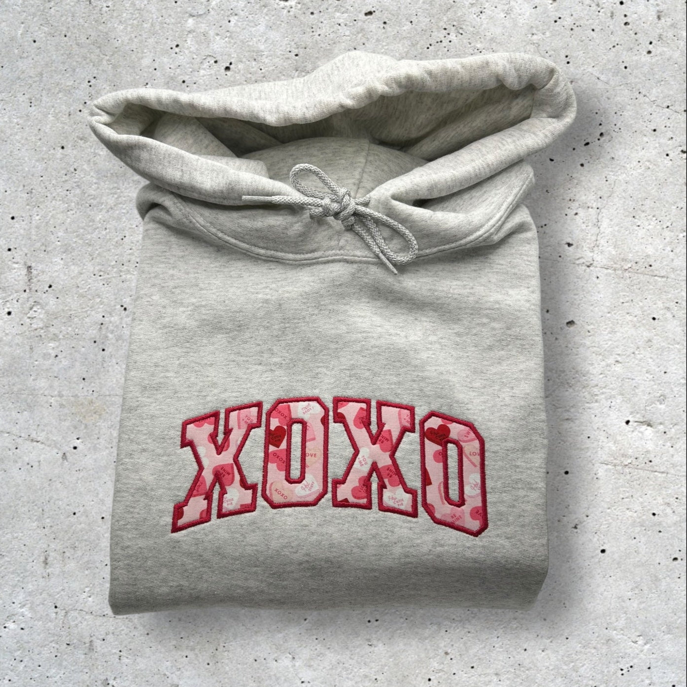 Embroidered XOXO Candy Hearts Applique Sweatshirt